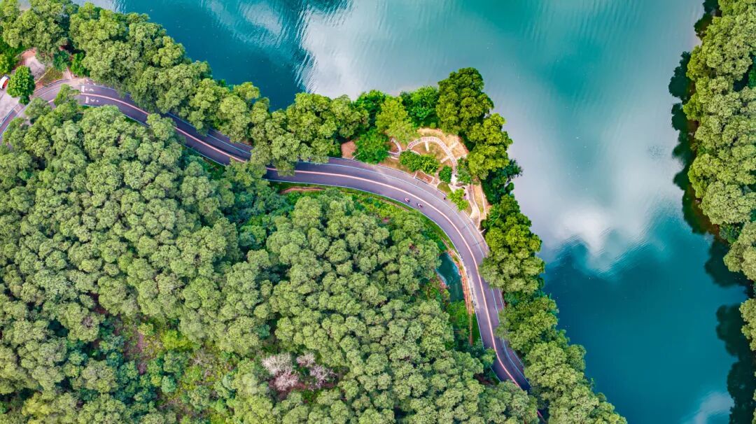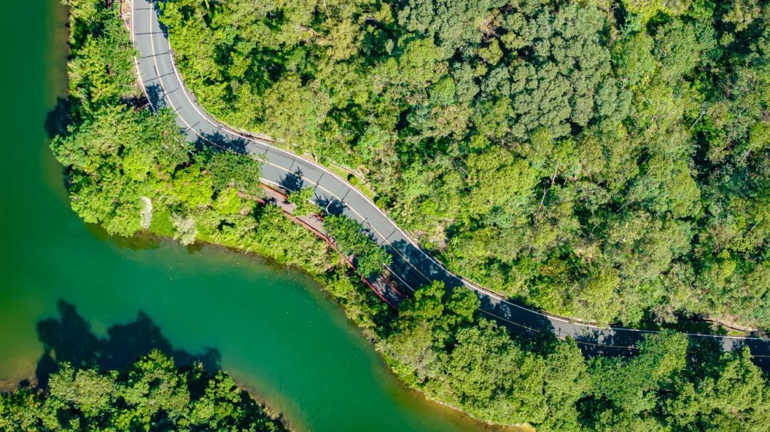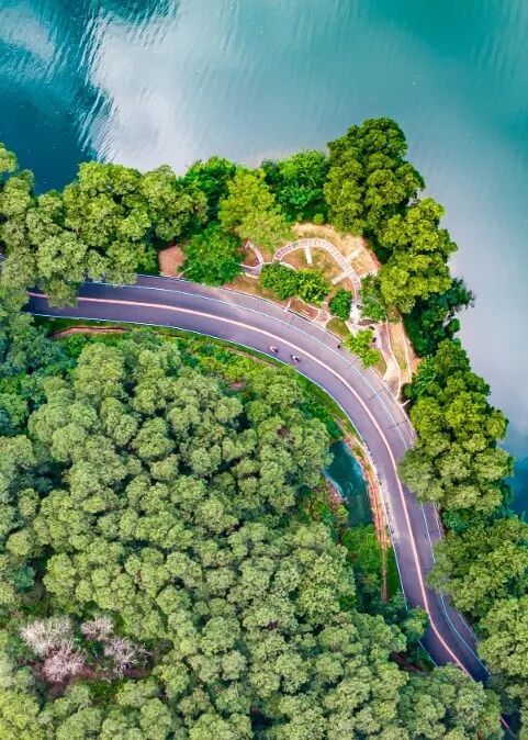 红花湖环湖绿说念内绿树成荫,林幽花艳